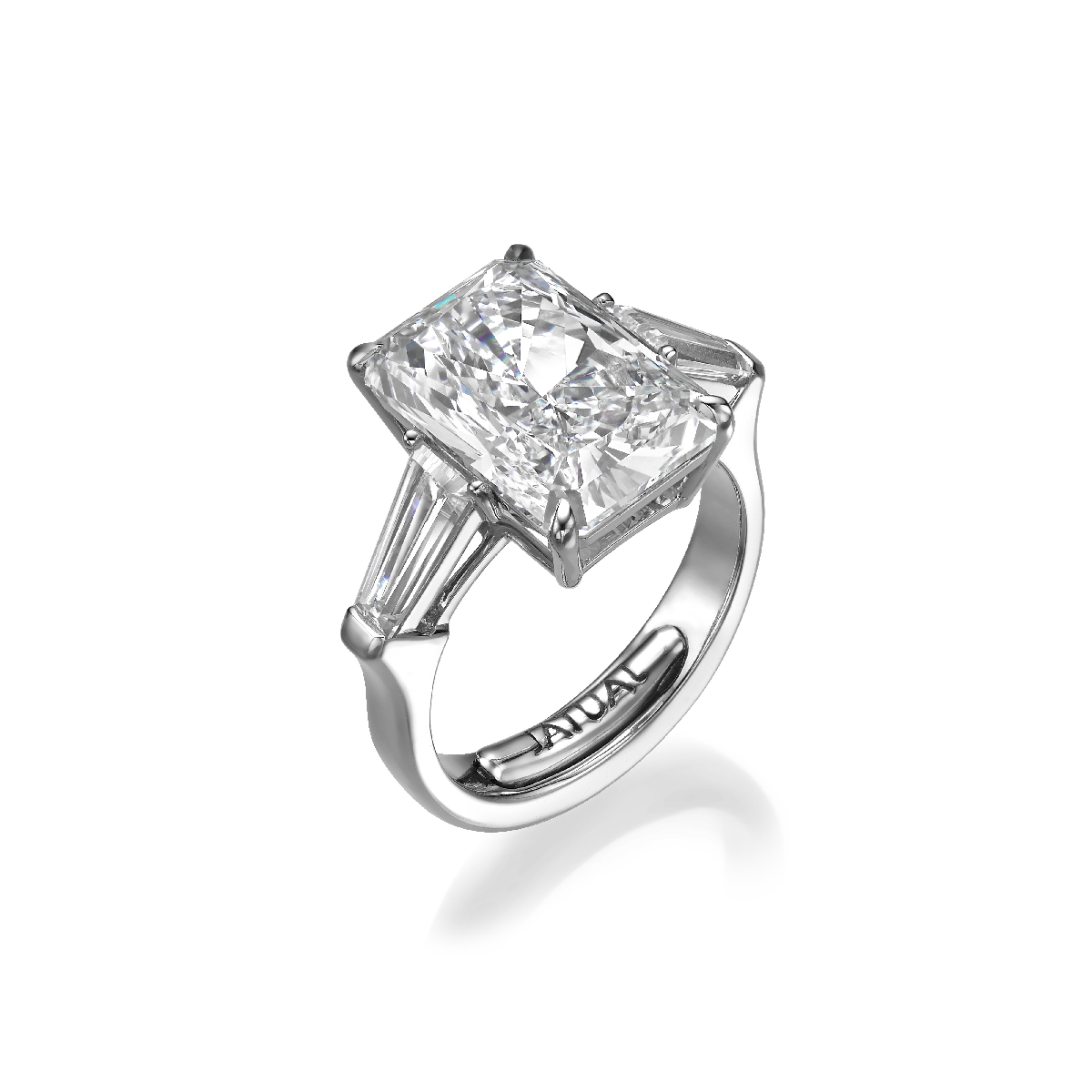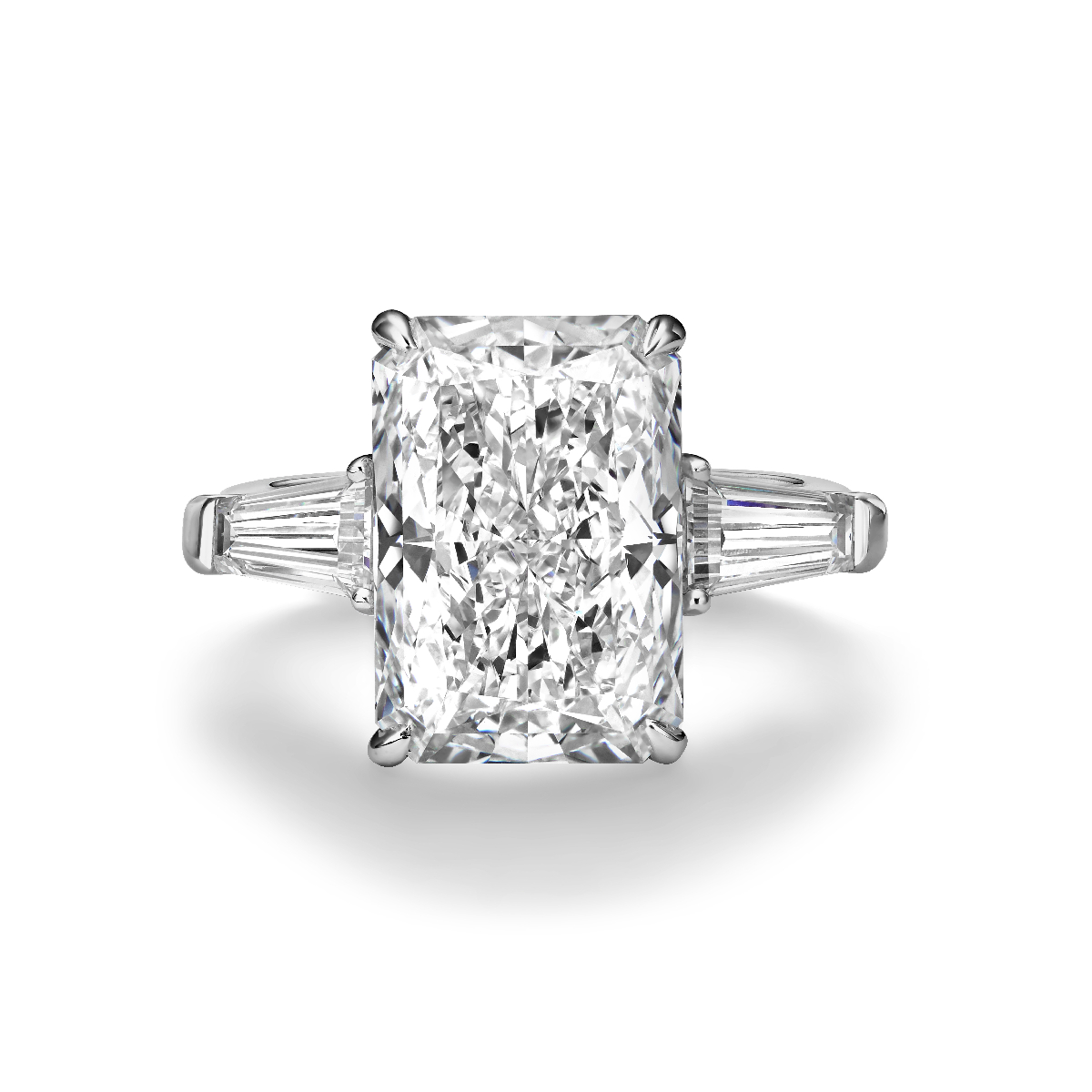 From the Champs-Élysées collection, this 18K white gold design features an 8.1 carat radiant-cut lab-grown diamond at its center. Sleek tapered baguette lab-grown diamonds frame the composition, with a total weight of 9.49 carats.