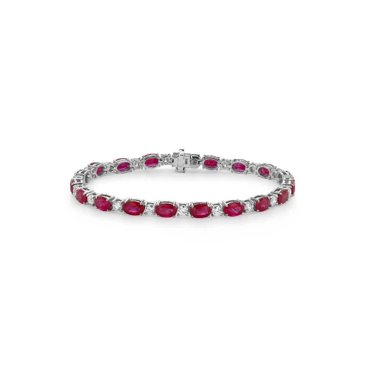 In the Jardins de Paris collection, this 18K white gold creation is composed of a continuous garland of oval natural rubies in a vivid red hue, totaling 13.63 carats. Round lab-grown diamonds provide contrast and light, reaching a total of 15.62 carats.